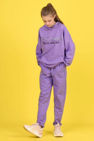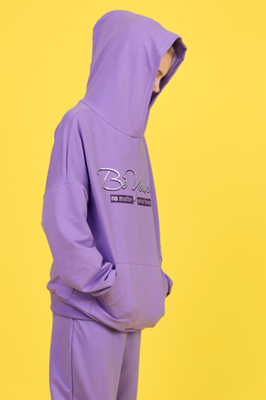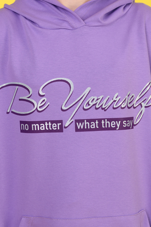 Фиолетовая мода. Перевод текста: "Будь самим собой и не важно что о тебе говорят." Толстовка для подростков очень удобного и свободного кроя, линия плеча спущена, рукава удлинённые. Большой карман "кенгуру". В измерениях длина рукава указана от шва втачивания капюшона. Манжет и низ толстовки обработан плотной резинкой кашкорсе. Функциональность этой толстовки в том, что её можно комбинировать как с любимыми базовыми вещами Вашего гардероба, так и со свободными брюками - оверсайз №21513.