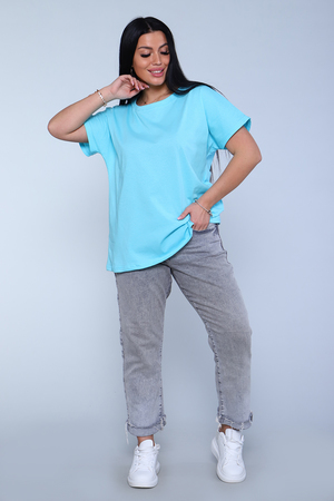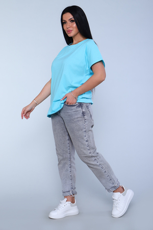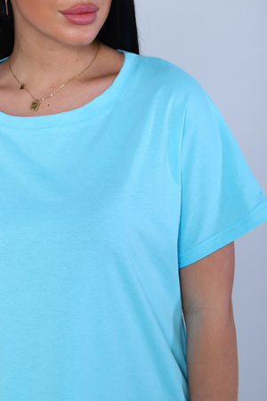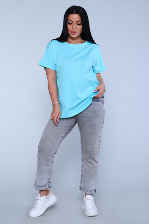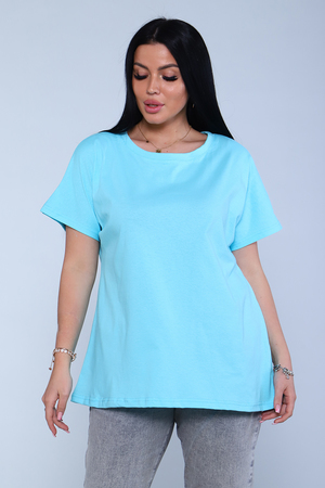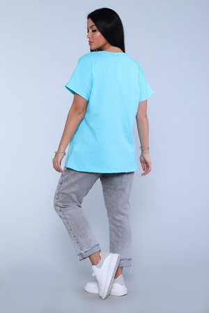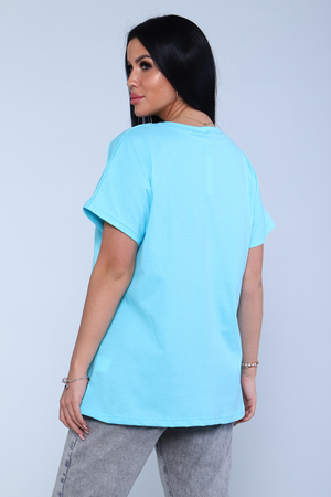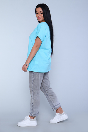 Футболка женская, свободного покроя. Рукав спущенный. Низ изделия обработан на плоскошовке.