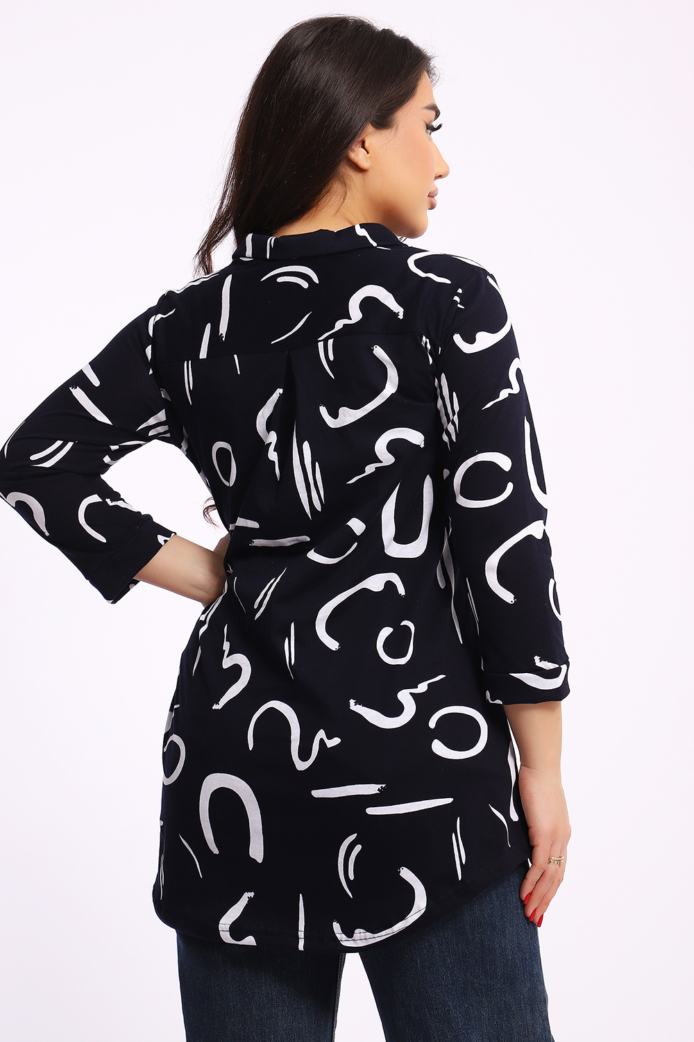 Женская туника-рубашка на пуговицах выполнена из хлопкового трикотажного полотна. Изделие свободного покроя с оригинальным комбинированием прекрасно подойдет для любителей комфорта в стильных вещах.