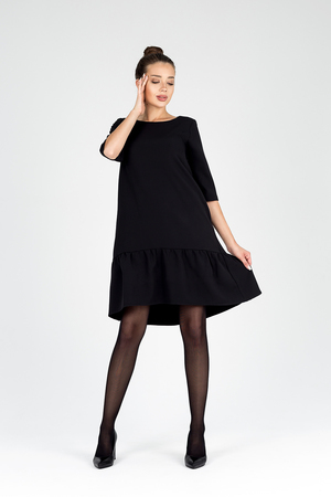 Свободное платье не сковывает движения, оборка по низу изделия добавляет нежности и мягкости; в этой одежде комфортно в течение всего дня. Платье подойдёт для работы в офисе, для прогулок на свежем воздухе и для вечеринок. Эта модель подойдёт большинству типов фигур. Силуэт платья свободный, рукав втачной, в боковых швах расположены карманы. Горловина обработана обтачкой. Оттенок ткани может отличаться