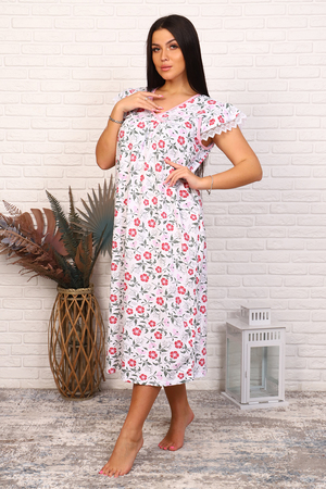 Женская сорочка из кулирки на кокетках, рукав-крыло, отделка кружево.