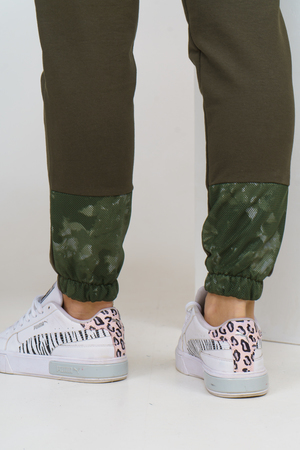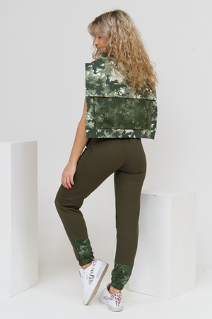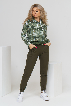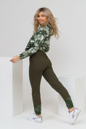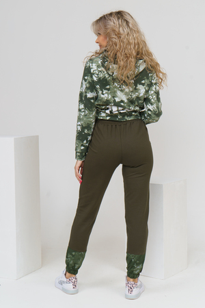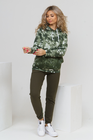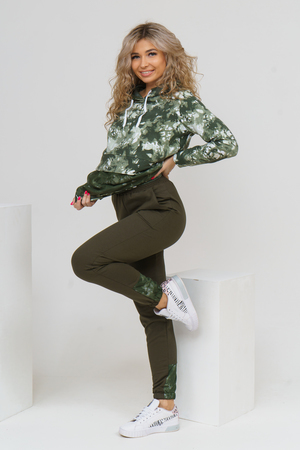 Женский костюм из футера и сетки состоит из толстовки и брюк. Толстовка с дизайном тай - дай, капюшоном, накладным карманом с клапаном и печатью на спинке, сочетается с модными брюками, создавая модный сет в стиле стритстайл.