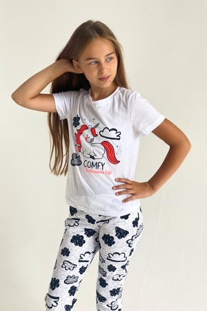 Футболка детская с коротким рукавом. Горловина с круглым вырезом, на полочке принт.