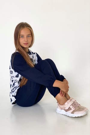 Костюм детский состоит из кофты и брюк, кофта с нагрудным кармашком, брюки со средним швом, накладными кармашками.