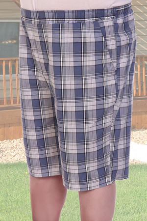 Мужские бриджи. Клетчатый дизайн, ткань-шотландка, 100% хлопок. Свободного покроя. Пояс отрезной, собранный на широкой резинке с отстрочкой. Карманы внутренние, боковые и 1 задний накладной карман с клапаном. Длина чуть ниже колена. Данный товар по цвету не подбирается.
