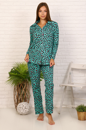 Женская трикотажная пижама из 100% хлопка с атласным кантом, кулирка. Комплект из рубашки с длинным рукавом на пуговицах и брюк с карманами. Стильный домашний лук с модным принтом. Удобный комплект, приятный на ощупь, дышащий. Пижама не сковывает движений, комфортна и приятна к телу. Пижама отлично сидит на фигурах разных типов.