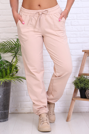 Комфортные и стильные женские брюки, хорошо садятся на любую фигуру, не сковывают и не стесняют движений. Дополняют модель брюк. Объемные карманы. Резинка располагается на поясе и в нижней части брюк, идеальны для активного отдыха.