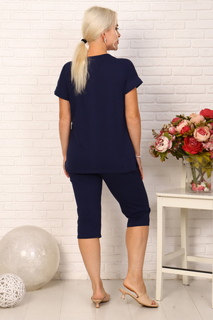 Костюм футболка и бриджи. Футболка свободного кроя на спущенном плече с манжетом и двумя разрезами в боковых швах и V образным вырезом горловины. Бриджи на поясе с карманами.