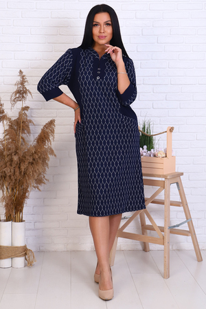 Платье прямого кроя. Воротник-стойка, рукав 3/4 на манжете. Передняя планка из однотонной ткани, боковой рельеф выделен однотонной тканью, карман - обманка. Изделие средней длины.