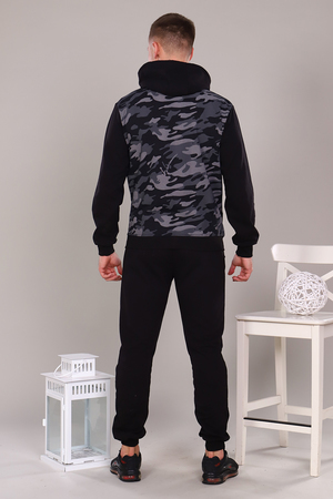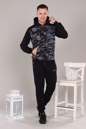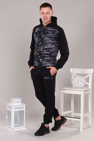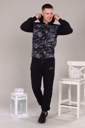 Стильный, удобный, легкий спортивный костюм, представлен в двух практичных расцветках, выполнен из футера 2-х нитки. Интересная модель с двойным капюшоном, толстовкой на молнии, низ на манжете, карманы на кофте и брюках на молнии. Модель может быть использована для прогулок, как домашний костюм, так и для спорта. Ткань отличного качества держит форму, не скатывается, не расползается. Камуфляжная расцветка всегда актуальна. Носите с удовольствием.