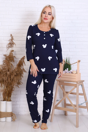 Комфортная теплая женская пижама, изготовлена из натурального хлопкового материала, состоит из футболки и брюк. Футболка с длинным рукавом и круглым вырезом горловины. Брюки прямого кроя, с карманами, пояс на резинке. Пижама однотонная с дизайнерским принтом.