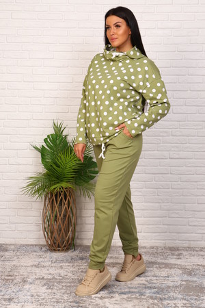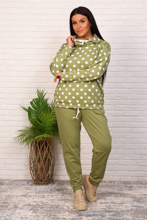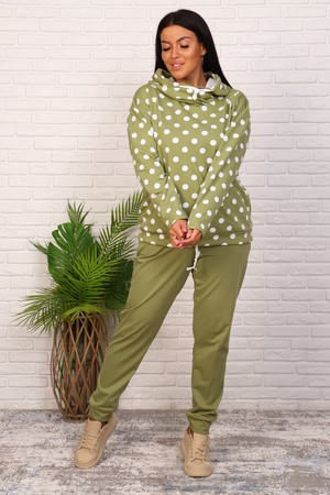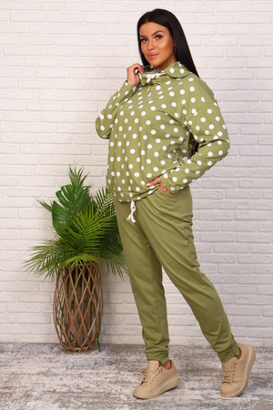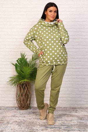 Женский трикотажный костюм, выполненный из футера 2х-нитки с лайкрой, состоящий из толстовки и брюк. Толстовка с капюшоном, боковыми карманами. В капюшоне и в поясе декоративный плоский шнурок. Брюки с высокой посадкой на резинке, свободного кроя, с боковыми карманами и разноуровневыми манжетами. Костюм удобен практичен и гармонично смотрится в повседневной жизни.