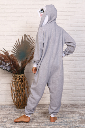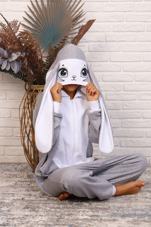 Комбинезон-кигуруми "Зайчик" выполнен из футера с начесом (100% хлопок). Это лучший выбор для крутой вечеринки, повседневной одежды и даже для сна. Комбинезон изготовлен из теплого материала, который легко стирается, не линяет, не теряет цвет и классно выглядит в течение долгого времени. Застегивается спереди на молнию. За счет своего свободного кроя не сковывает движений. Очень теплый, мягкий, оригинальный и веселый комбинезон.