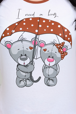 Пижама с шортами на каждый день. Свободные шортики с карманами, на талии заложены по две мягкие складки с каждой стороны. Футболка из мягкого трикотажа, милый мимишный принт