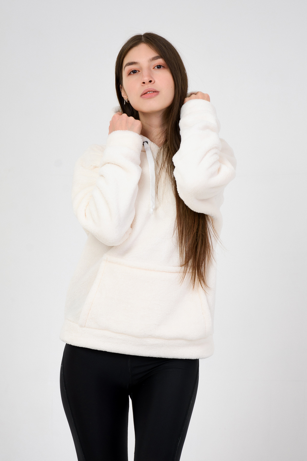 Толстовка женская с капюшоном и карманом-кенгуру. Изделие выполнено из однотонного велсофта в трех цветах. Теплая, приятная к телу модель, отличный вариант на каждый день.