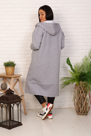 Жакет женский демисезонный, выполненный из плотного хлопкового трикотажа - футера 3-х нитки с начесом. Капюшон фиксируется декоративным шнуром, удобные объемные накладные карманы, длина ниже колена, застегивается на разъемную тракторную молнию с двумя собачками. Полочка и карман декорированы шевроном. Жакет очень мягкий, теплый, подойдёт для любой возрастной группы.