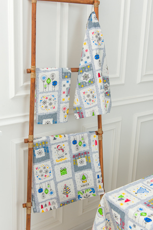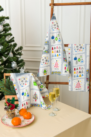 Набор из трех кухонных полотенец размером 48*60 с зимней праздничной символикой наполнит любую кухню яркими красками. К каждому полотенцу пришита петелька. Набор может быть отличным дополнением к скатертям "Хюгге"