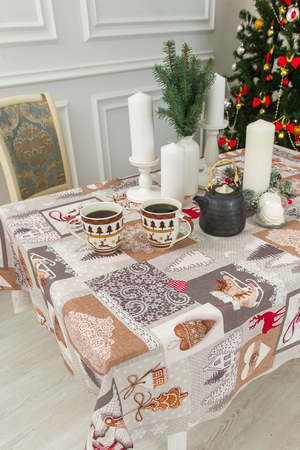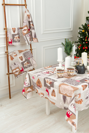 Скатерть Лапландия из рогожки размером 220*150 поможет создать в доме атмосферу праздника и уюта.