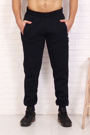 Теплые мужские брюки с манжетами и карманами на молнии. На карманах декоративная плащевка.
