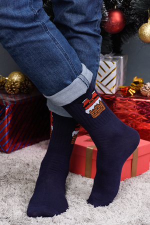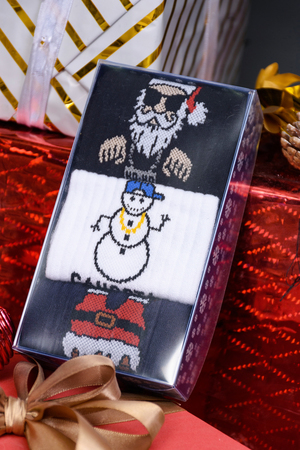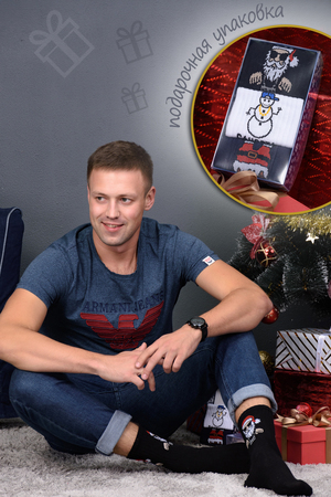 Новогодний подарочный набор мужских носков. В комплекте 3 пары в красивой картонной упаковке