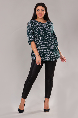 Женская туника свободного А-образного силуэта выполнена из футера. Округлая горловина обработана окантовкой. Рукав 3/4 и низ изделия собраны патами с декоративными пуговицами. Туника скрывает недостатки и подчёркивает достоинства фигуры, что немаловажно для представительниц прекрасного пола.