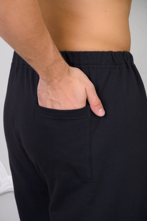 Мужское трико из футера 2-х нитки с начёсом с манжетами из плотной качественной резинки - кашкорсе. Пояс на широкой резинке 2 см. Сзади имеется один накладной карман. Изделие изготовлено из 100% хлопка. После стирки может быть небольшая усадка, поэтому имеется напуск.