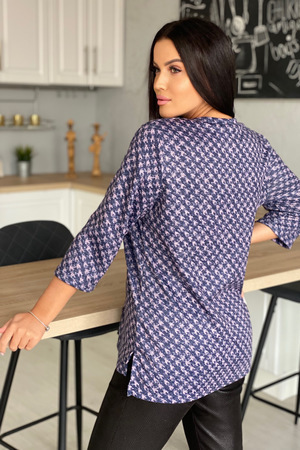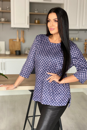 Кофта женская полуприлегающего силуэта, горловина округлая, рукав втачной 3/4, по низу разрезы.