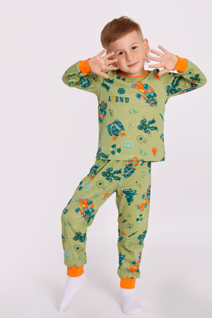 Пижама из тонкой хлопковой ткани. Джемпер прямого силуэта, с втачными рукавами на манжетах. Горловина отделана обтачкой. Брюки прямые на манжетах, пояс цельнокроенный на резинке. Манжеты рукавов, брюк, а также обтачка горловины выполнены из эластичной ткани. Ткань мягкая, гипоаллергенная, хорошо пропускает воздух. Подойдет для дома.