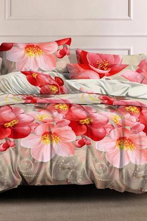 Комплект выполнен из одной из популярнейших тканей - полисатина, успешно потеснившей своего сатинового предшественника. По ощущению полисатин мягкий, нежный, по-другому называют искусственным шелком. Визуально имеет яркие расцветки, имитирующие эффект 3Д рисунка, изображения. Благодаря специально разработанной технологии нанесения узоров обеспечивается высокое качество и визуальная естественность белья. Полисатиновый комплект оживит атмосферу, делая ее яркой, сочной. Поверхность отличается шелковистостью, приятным сиянием, служит длительное время, не выцветает, не линяет. Белье рассчитано на активное использование и многократные стирки. Прочная ткань имеет двойную скрутку волокон, за счет которой полотно становится плотным, прочным. Другое свойство белья — оно неприхотливо в уходе, легко отстирывается. Поскольку оно не мнется, отпадает необходимость в глажке