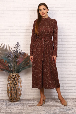 Остромодное платье-трапеция появилось более полувека назад. Безусловно, этот фасон очень выгоден для женщин с неидеальной фигурой! Если вы хотите отвлечь внимание от проблемных зон, но подчеркнуть женственность, трапеция подходит идеально. Наше платье длиной миди, с воротником-стойкой и длинным рукавом, с поясом, который подчеркнет талию.