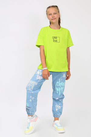 Футболка с принтом на полочке из хлопкового трикотажа. Свободный силуэт, круглый вырез горловины, короткий рукав.