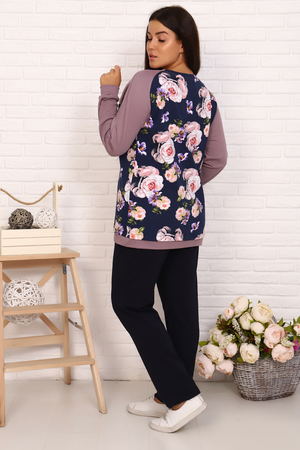 Туника женская, полочка и спинка из набивного футера двух нитки. Рукав реглан однотонный из интерлока качества пенье. Для дома и отдыха.