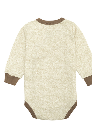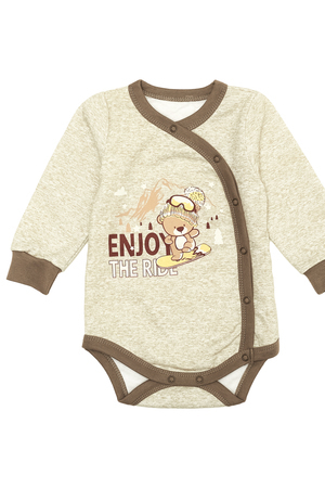 Боди с длинным рукавом для мальчика. Изготовлен из 100% хлопка, ткань футер. Кнопки расположены по длине изделия и между ножек. Декорирован принтом.