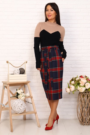 Юбка-карандаш с завышенной талией и карманами подойдет как для деловой встречи, так и для праздника, прогулки. Такие юбки не перестают быть актуальными со временем, потому что это настоящая классика. Юбка застегивается на молнию, а впереди декорирована застежкой на пуговицы. На талии завязывается пояс.