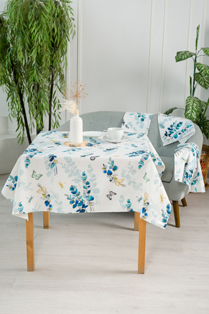Стильная светлая скатерть размером 220*150 для большого стола. Изделие выполнено из рогожки плотностью 170 грамм/м2. Для окрашивания ткани используются стойкие натуральные красители, благодаря чему скатерть не выцветает после многочисленных стирок.