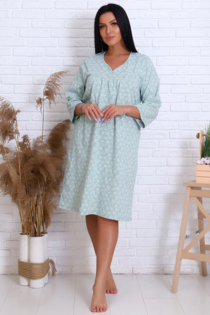 Сорочка женская с рукавом 3/4. Данная модель выполнена из трикотажного полотна кулирка (хлопок 100%). Крой реглан. Полочка отрезная на груди, кокетка с белыми кнопками, сверху части юбки присутствует сборка. Спинка отрезная с кокеткой. Очень удобная и комфортная модель