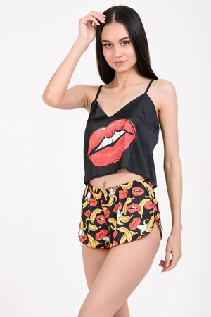 Пижама женская Hot Story «Kiss Black», в игривой комплектации из укороченного топа и сексуальных шортиков.