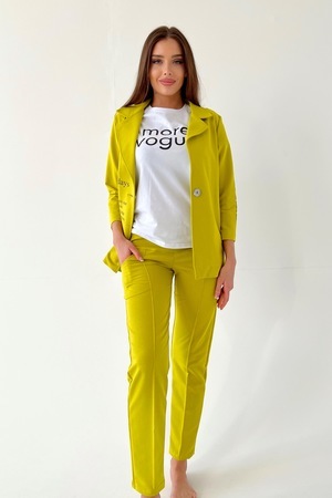 Ольга Владимировна15.06.2022 в 11:51Классные брючки. Взяла желто-горчичный. Соответствует размерной сетке. Собрала весь комплект: жакет, толстовка, жилет и брюки. Смотрится бомбически. Цвет яркий, ткань не мнется. Очень довольна!