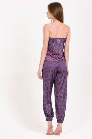 Пижама женская Hot Story «Princess», в элегантной комплектации из удлиненного топа и сексуальных брюк с завышенной талией. Глубокий фиолетовый цвет в сочетании с золотистыми деталями создает неповторимый образ.