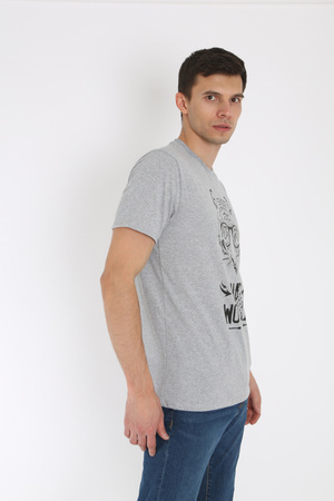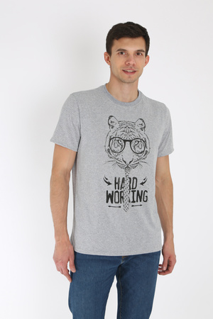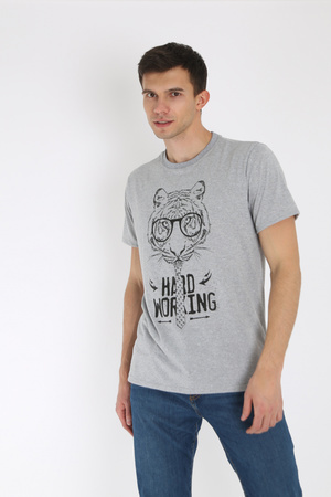 Футболка из легкого трикотажа кулирки. Горловина отделана обтачкой, рукава втачные, на полочке модный принт.