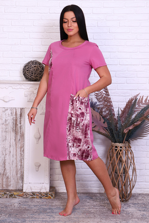 Женская туника из кулирки. Средняя длина, короткий рукав, отделка и большой карман из набивной ткани