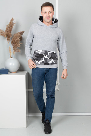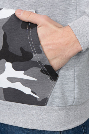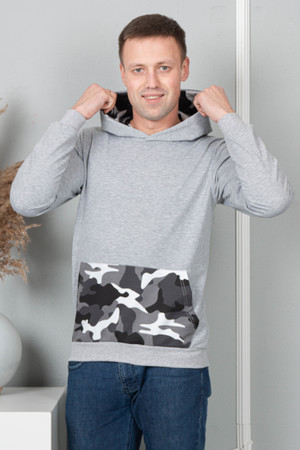 Толстовка в стиле милитари. Изготовлена из футера 2-х нитки. Характеризуется практичностью в носке и отличным внешним видом. Внутренняя часть капюшона и кармана - кенгуру отделана футером, расцветка камуфляж. Свободный крой изделия придаёт комфорт и не сковывает движений. Манжеты и пояс изготовлены из эластичного материала - рибана с лайкрой.