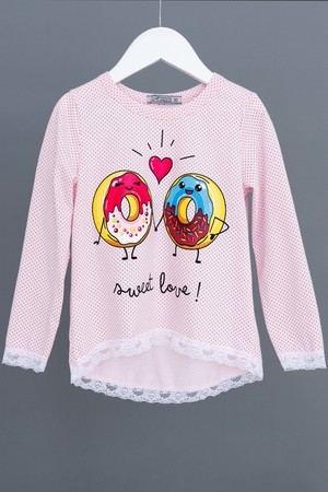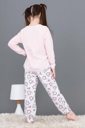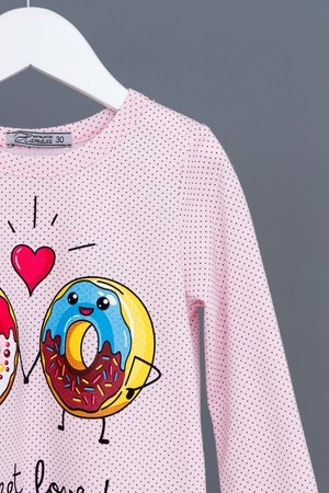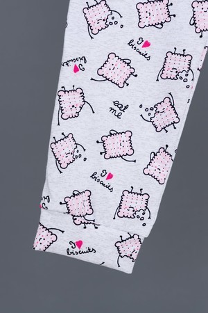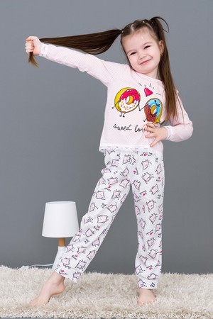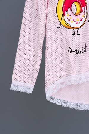 Пижамка детская со сладкой печатью! Изготовлена из гипоаллергенного трикотажа, хлопок не электризуется и обеспечивает циркуляцию воздуха. Пижама свободного кроя, не ограничивает движения. Кофта с длинными рукавами, низки и рукава отделаны мягким кружевом. Штанишки на манжете. На примере пижамы 50506 можно увидеть как выглядит маленький размер. Размерная сетка обеих пижам идентична.