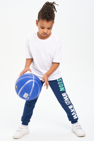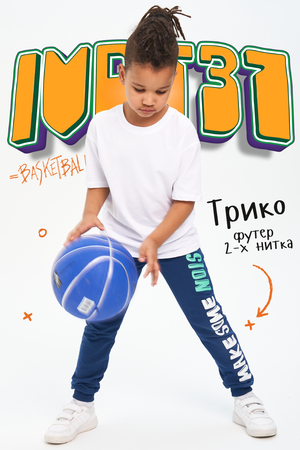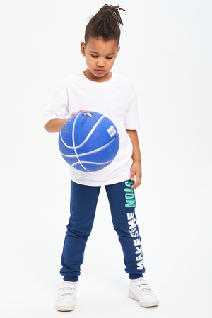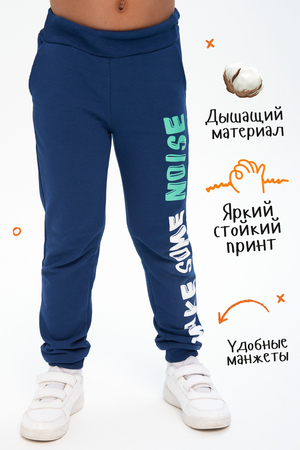 Брюки для детей дошкольного и младшего школьного возраста из трикотажного полотна футер с лайкрой и кашкорсе. Брюки на поясе из эластичного трикотажа с резинкой внутри, низ брюк на манжете из эластичного трикотажа. На передней части штанин боковые карманы.