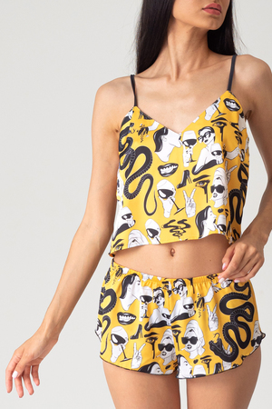 Пижама женская Hot Story «Bitch», в игривой комплектации из укороченного топа и сексуальных шортиков. Оригинальный принт создаст незабываемый образ.
