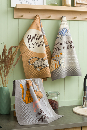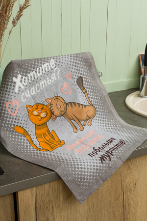 Набор из трех полотенец размером 48*60 с изображением кошек и сердечек. Полотенца с петелькой выполнены из высококачественной рогожки плотностью 170 грамм/м2. Набор "Кошачьи тайны" станет хорошим подарком ко дню всех влюбленных.