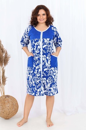 Халат, который вы искали! Удобная и женственная модель для любительниц классического стиля выполнена из качественного хлопка. Халат домашний средней длины с комфортной посадкой по фигуре. На молнии, с боковыми накладными карманами, рукав 3/4. Приятная цветовая гамма модели подойдет любому цветотипу и вашим близким. Ткань изделия - кулирная гладь 100% хлопок.