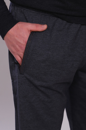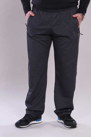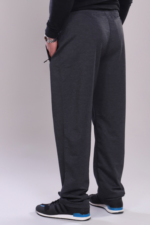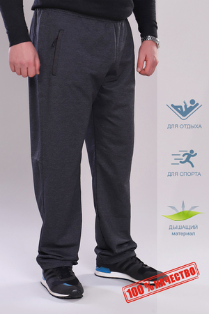 Мужские брюки прямого кроя, пояс на резинке. Карманы на молнии с брелоком, с декоративной листочкой.