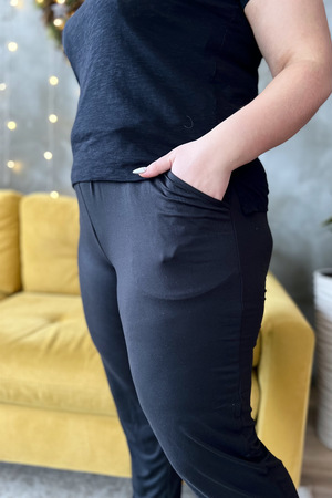 Брюки женские свободные, низ брюк на широкой манжете. На передней половинке брюк внутренние карманы. Пояс прострочен на многоигольной машине. На модели 52 размер