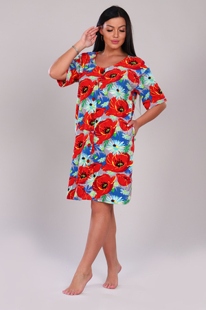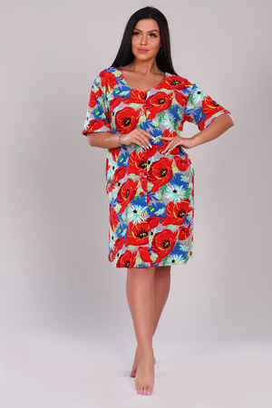 Халат из нежной махры, с карманами, средней длины, красивый цветочный принт
